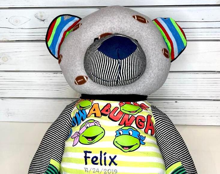 A plush animal made out of baby blankets, outfits, and other memory clothes is an excellent gift for any occasion. They are keepsakes that you can cherish and hug at any time, and bring to present beautiful memories of your children and your loved ones!